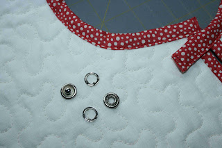 for the closure, I am using stainless steel snaps. I love these things-they are easy to use and durable. (I buy them at Wal-Mart, Jo Ann's or Hobby Lobby.) These are size 16 - 7/16".